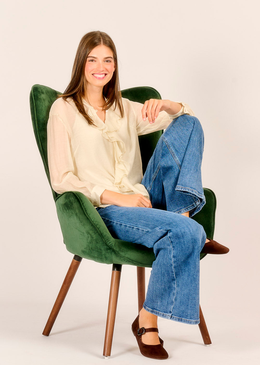 Diese feminine Bluse verzaubert mit zarten Rüschen, die das Dekolleté stilvoll betonen und dem Look eine romantische Leichtigkeit verleihen. Das fließende Material umspielt die Figur und sorgt für eine elegante Silhouette, die sowohl im Büro als auch bei festlichen Anlässen überzeugt. Durch ihr dezentes Design ist die Bluse vielseitig kombinierbar und wird zum absoluten Lieblingsteil in Ihrer Garderobe. Ein unverzichtbares Basic, das Sie im Handumdrehen in eine stilvolle Fashionista verwandelt.
