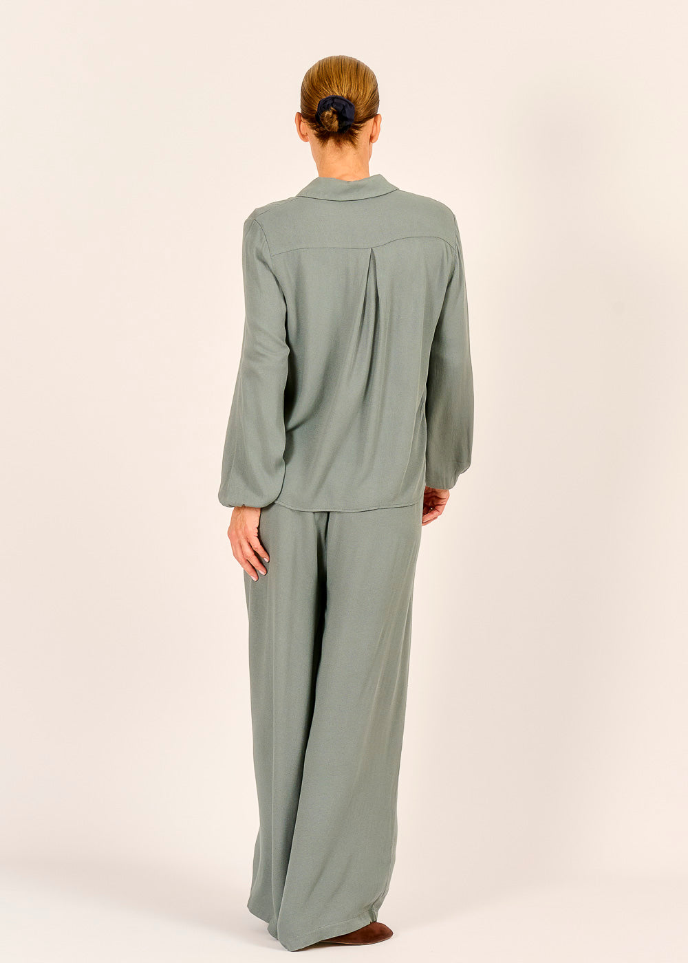 Diese Bluse vereint schlichte Eleganz mit müheloser Leichtigkeit – der fließende Stoff umschmeichelt die Silhouette und sorgt für ein angenehmes Tragegefühl. Mit ihrem zeitlosen Schnitt und den feinen Details wie den dezenten Knöpfen lässt sie sich vielseitig kombinieren – ob lässig zur Jeans oder edel zum Rock. Zusammen mit einer passenden Hose bietet sie eine moderne Alternative zum klassischen Anzug. Ein Must-Have für alle, die Komfort und Stil auf harmonische Weise verbinden möchten.