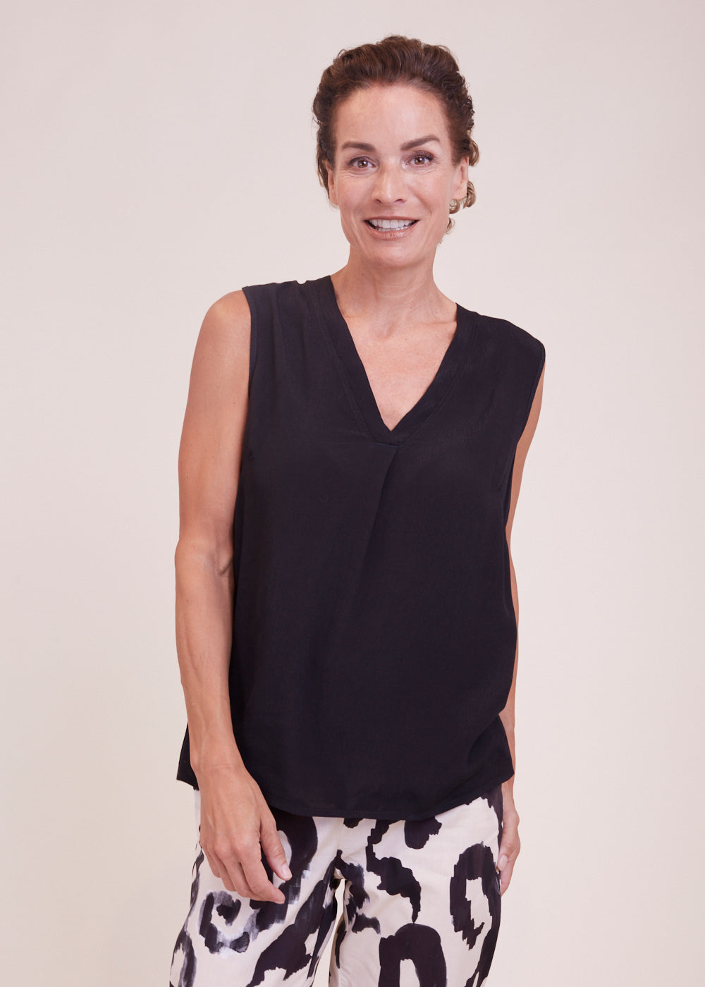 Ein toller Kombinationsartikel der in deinem Kleiderschrank nicht fehlen darf! Elegantes Basic-Top mit V-Ausschnitt und eingefasster Falte für eine noch schöner Silhouette. Das Top aus 100% Viskose hat einen geraden Schnitt und fällt locker um den Oberkörper.