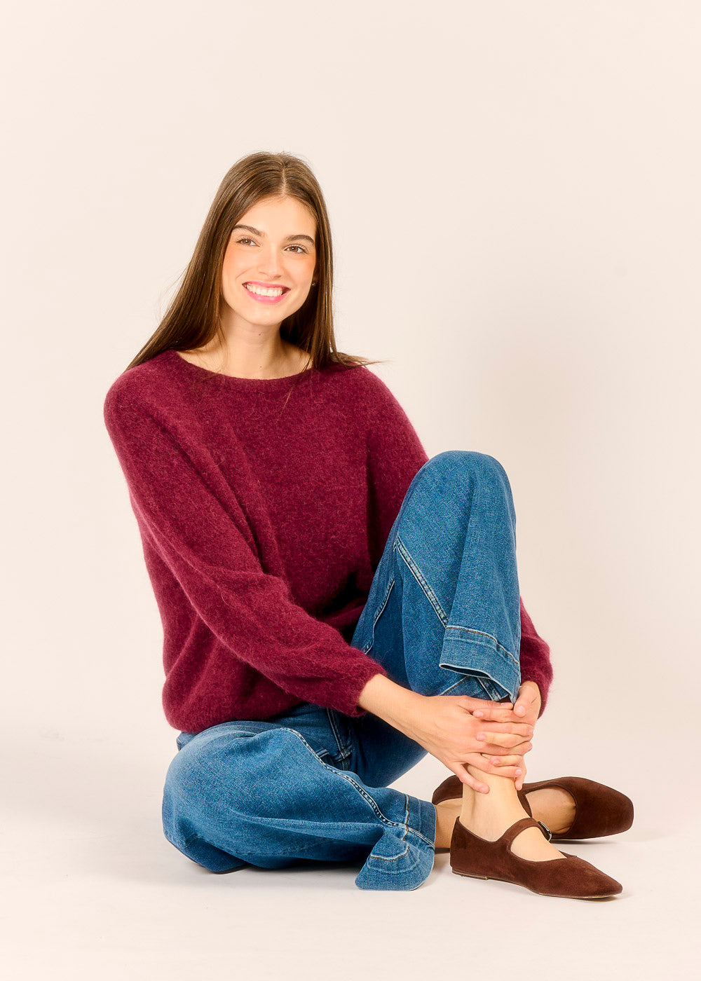 Lassen Sie sich von diesem kuscheligen Pullover in der tiefen, eleganten Trendfarbe Vino (Bordeaux) in den Bann ziehen. Er ist der ultimative "Wohlfühlpullover", dessen weiches Material und lockerer Schnitt sofortige Behaglichkeit versprechen. Ob zur lässigen Jeans oder über einem Rock – dieses luxuriöse Basic verleiht Ihrem Alltags-Look einen Hauch von stilvoller Tiefe und Wärme.