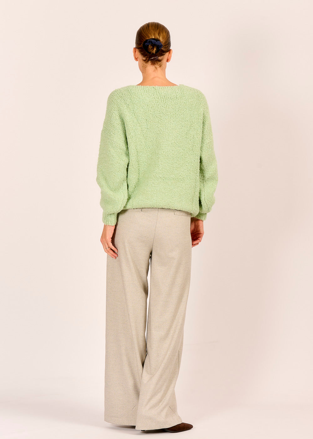 Dieser Bouclépullover in der zarten Farbe Salvia begeistert mit seiner kuscheligen Textur und lässigen Eleganz. Das weiche Material sorgt für ein angenehmes Tragegefühl und macht ihn zum perfekten Wohlfühl-Piece. Für den perfekten Look gibt es den passenden Schal dazu – ideal für stilvolle, harmonische Outfits.