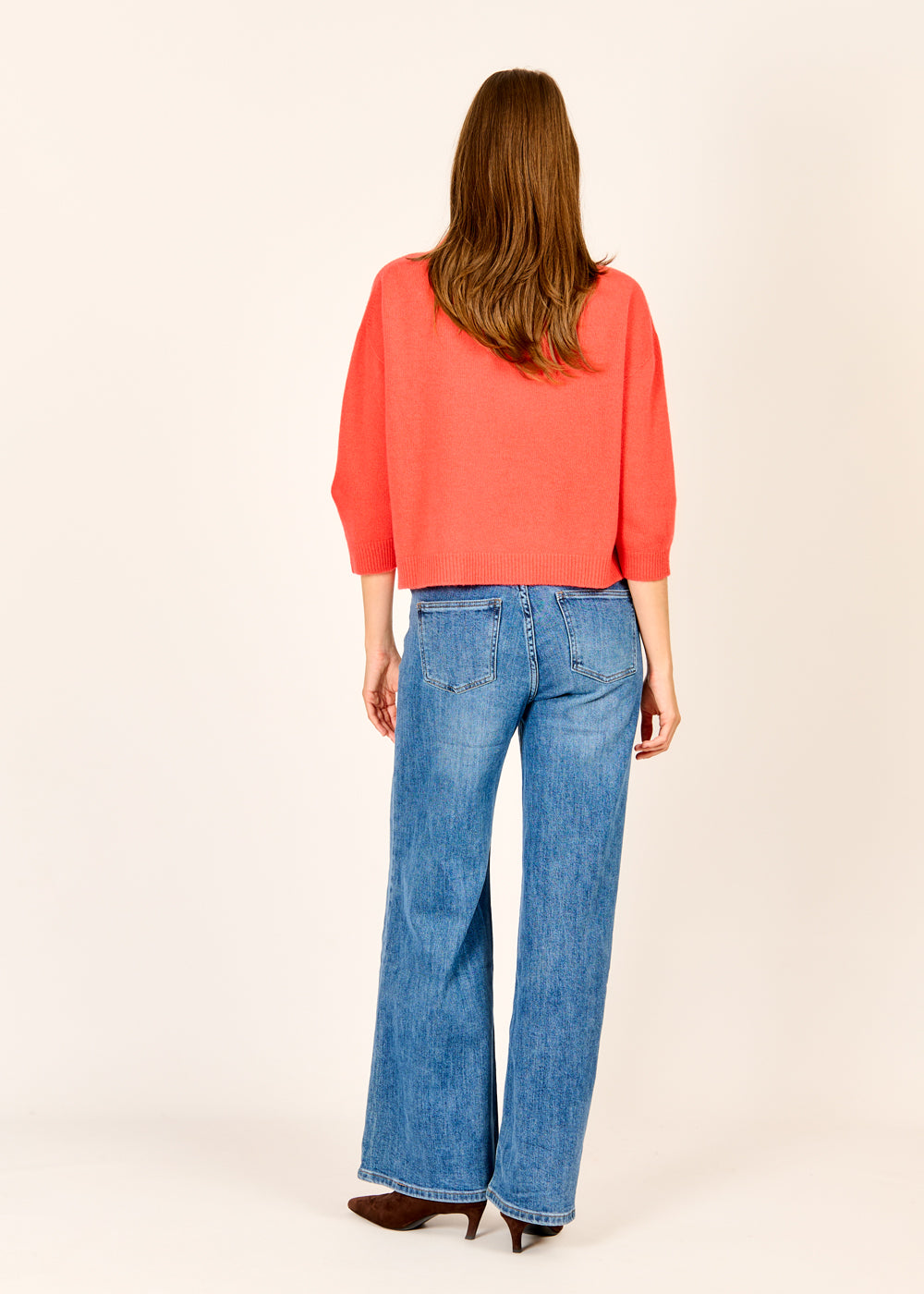 Unser 3/4-Arm Pullover in strahlendem Corallo ist die perfekte Wahl für einen modischen Auftritt. Der Pullover ist aus superweicher Wolle gefertigt, die für ein unvergleichlich angenehmes Tragegefühl sorgt. Mit dem lässigen Schnitt und der lebendigen Farbe verleiht er jedem Outfit eine frische und moderne Note.