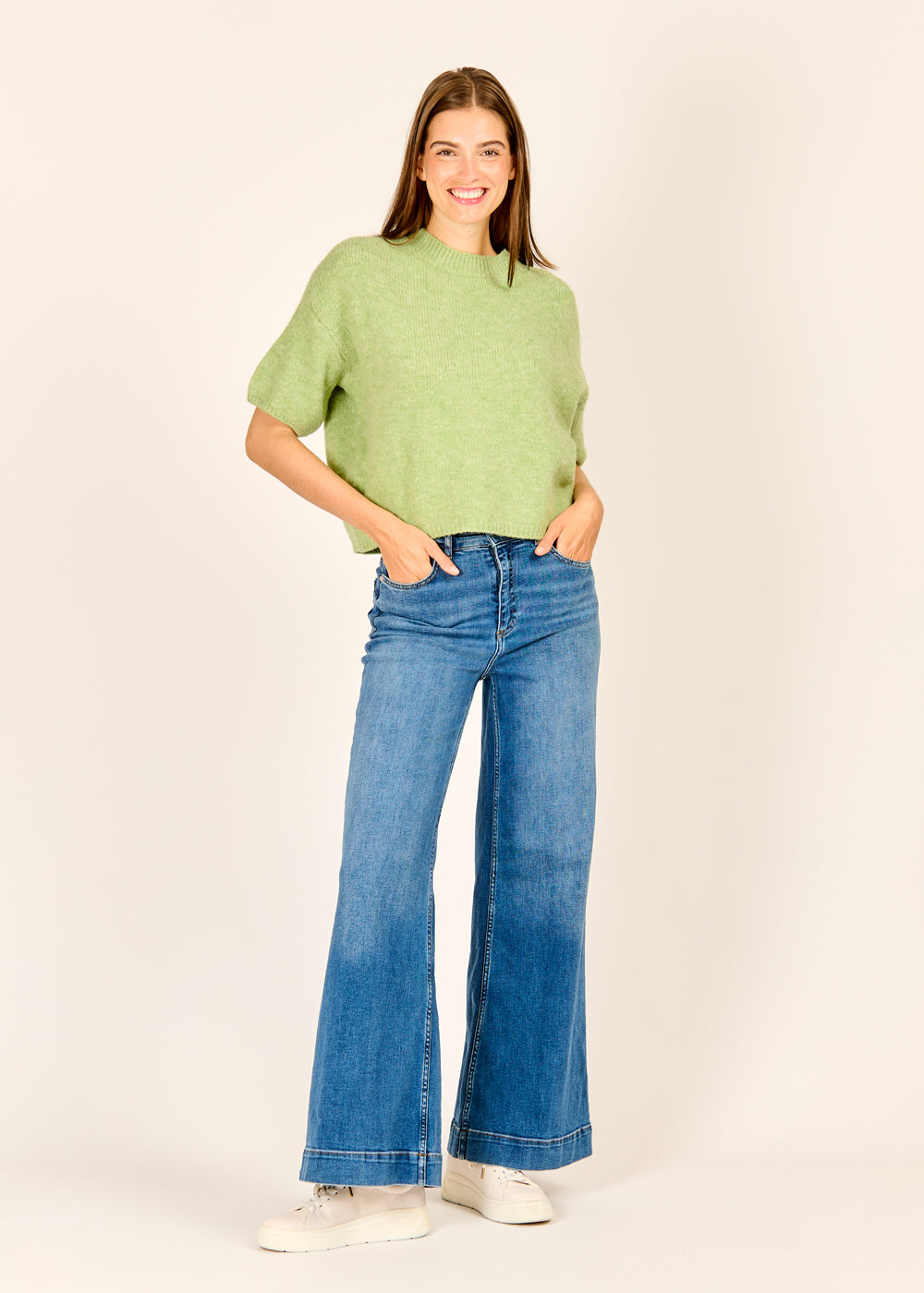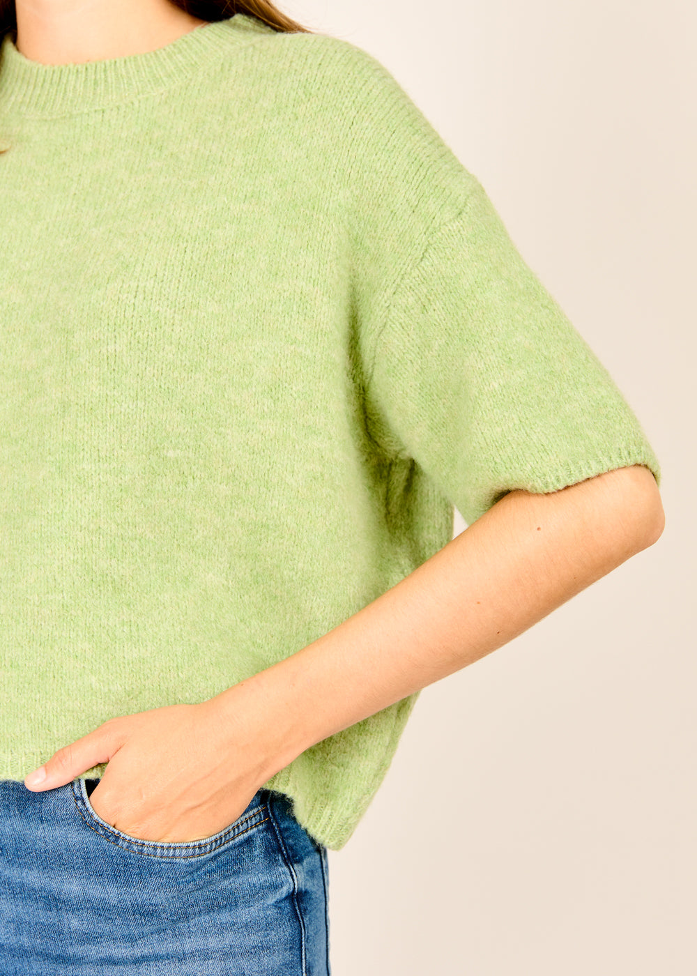 Dieser zarte Strickpullover in der trendigen Farbe Pistazie bringt frische Eleganz in jede Garderobe. Dank seines kuscheligen Materials und der lockeren Passform bietet er höchsten Tragekomfort und eine schmeichelhafte Silhouette. Ein stilvolles Highlight für sonnige Tage, das jedes Outfit zum Strahlen bringt.